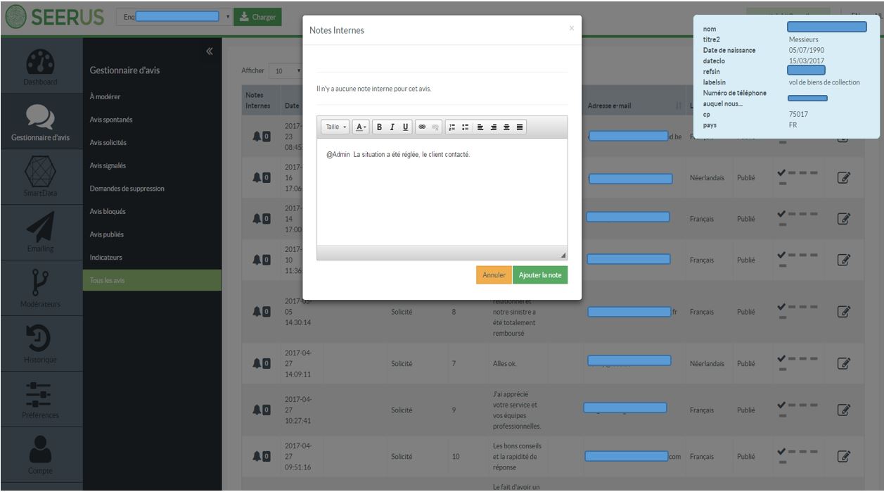 Incidentally, this was an opportunity for the broker to request through the satisfaction survey to populate its database and to update the contact data of its customers BY its customers.